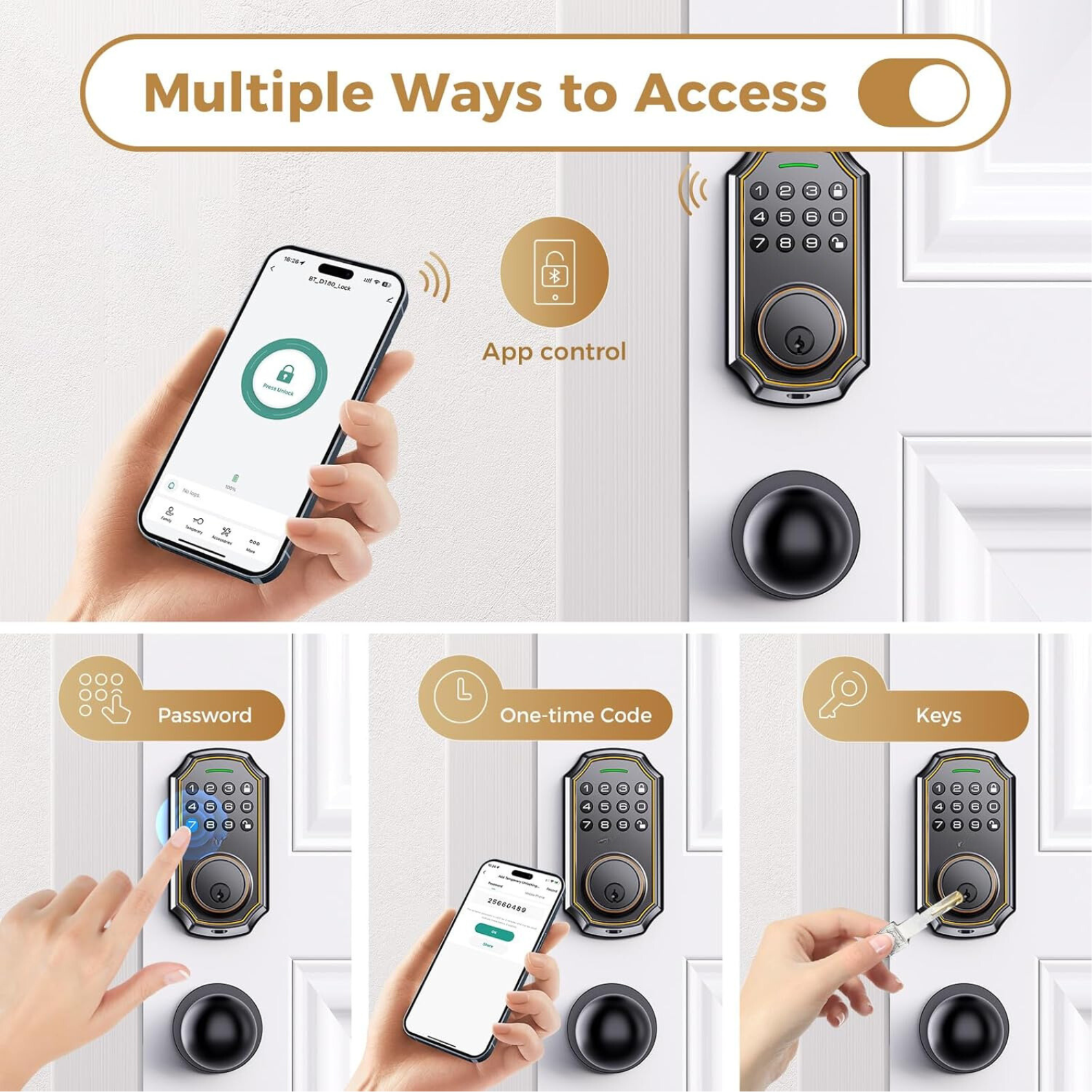 Imagine never checking your pockets for your house keys again. Our Electronic Keypad Deadbolt Lock offers keyless access for you and your family to enjoy quick and hassle-free entry. Whether you're juggling groceries or rushing out the door, the one-touch locking feature ensures secure access in seconds. Say goodbye to lost keys and hello to modern convenience.